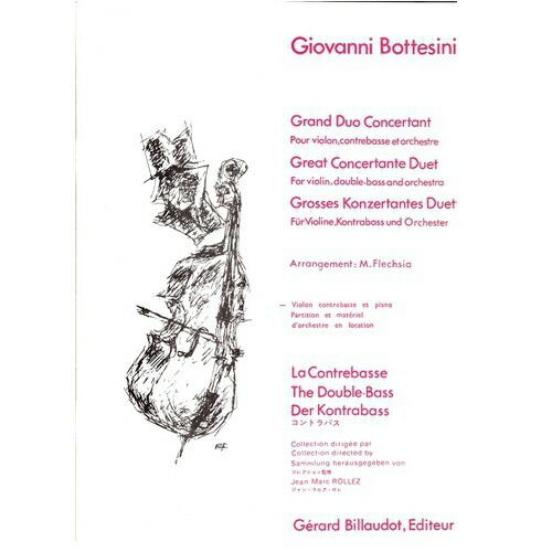 【輸入楽譜】ボッテジーニ, Giovanni: 協奏的大二重奏曲: バイオリン、コントラバスとピアノ・リダクションのセット