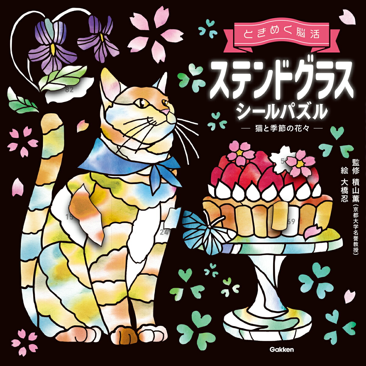 ステンドグラスシールパズル 猫と季節の花々