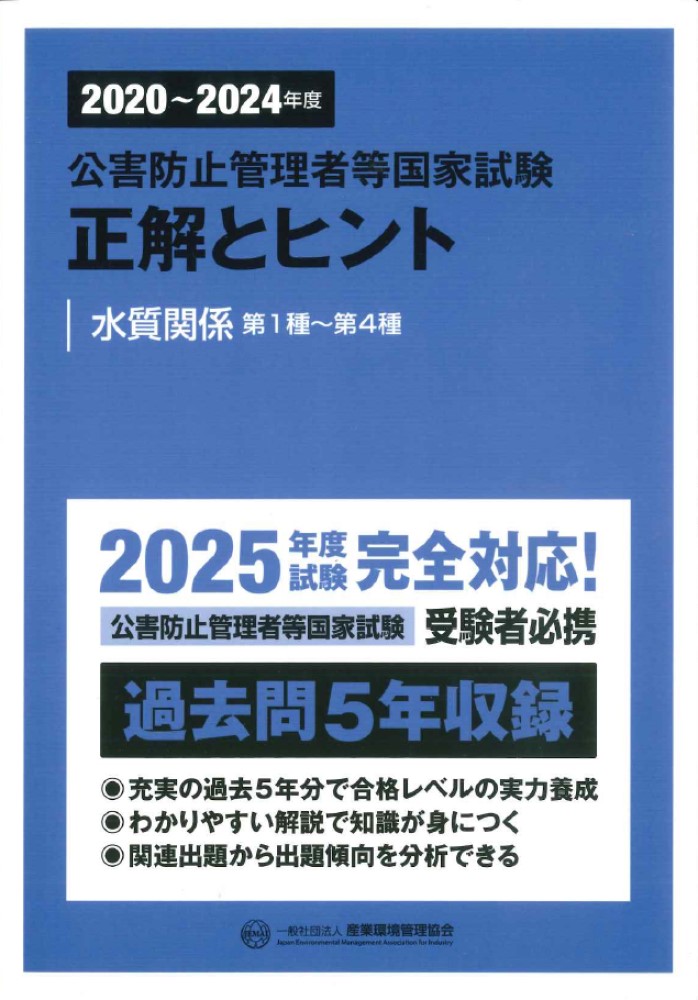 2020〜2024年度 公害防止管理者等国家試験 正解とヒント 水質関係第1種〜第4種